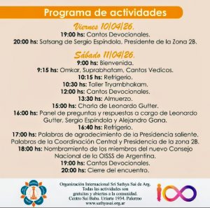 Las actividades se desarrollarán durante el fin de semana del 11 y 12 de abril, en los Centros Sai Baba de Uriarte y Florida, convocando a miembros y devotos de todo el país a participar de este momento especial como una sola familia Sai.