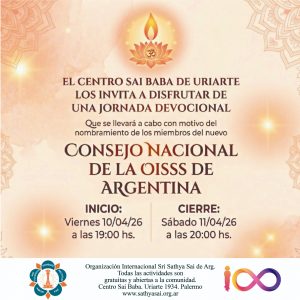 Las actividades se desarrollarán durante el fin de semana del 11 y 12 de abril, en los Centros Sai Baba de Uriarte y Florida, convocando a miembros y devotos de todo el país a participar de este momento especial como una sola familia Sai.